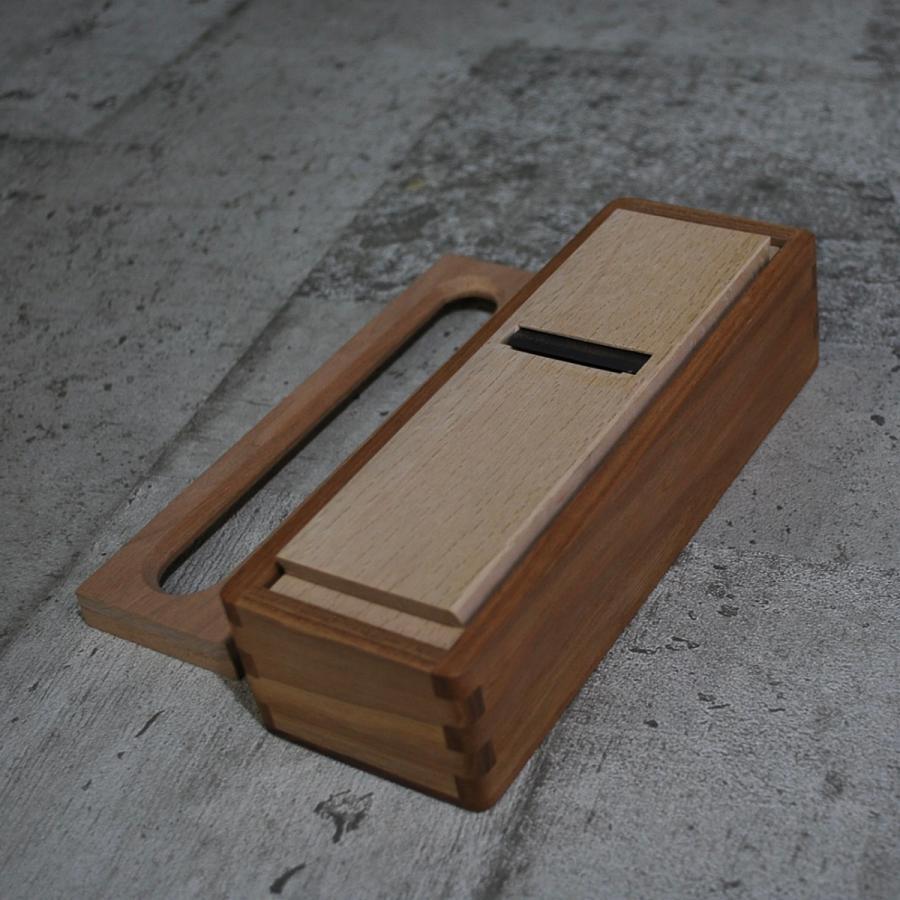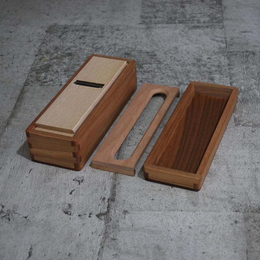 本体の木組みで作られた丈夫な箱はクルミの木でできており、鉋台は国産の樫を使用しています。