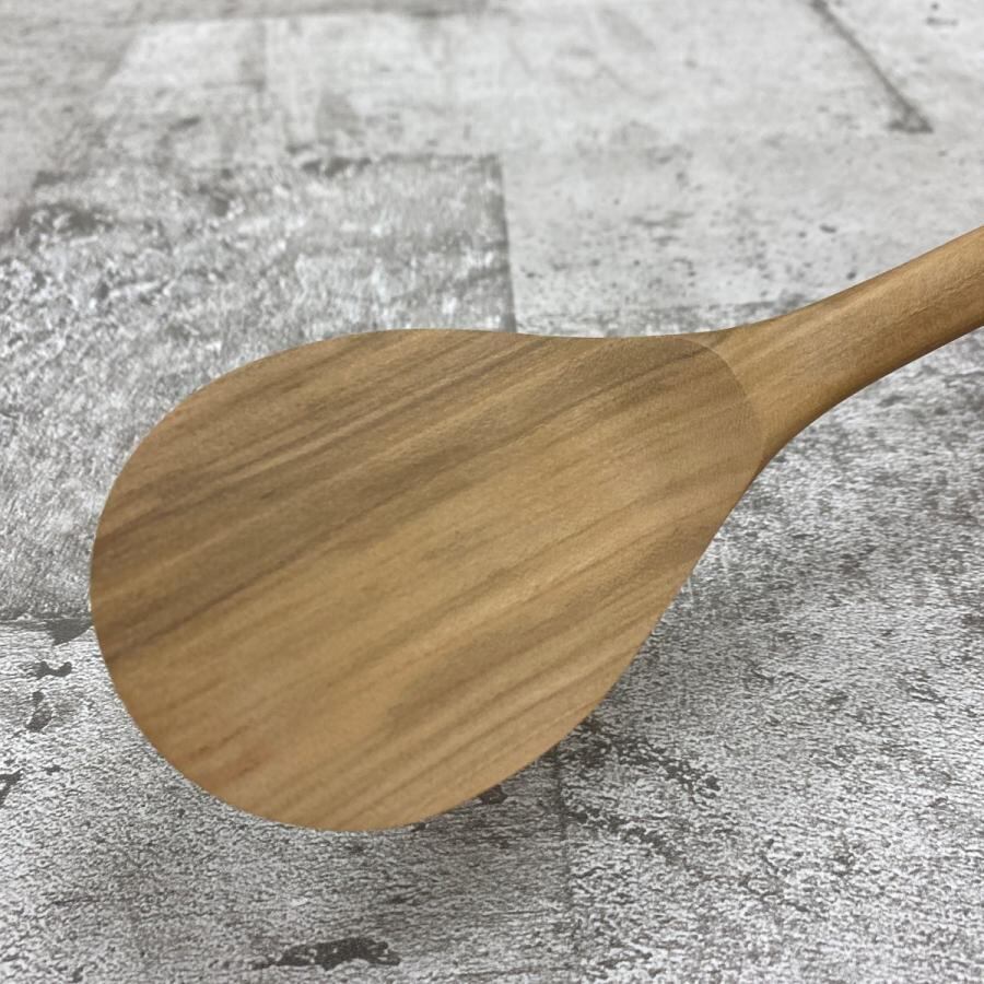 丸みのあるハンドルで掴んだ感じが優しく、しっかり滑らかなヘラ部分には程よいカーブがついています。