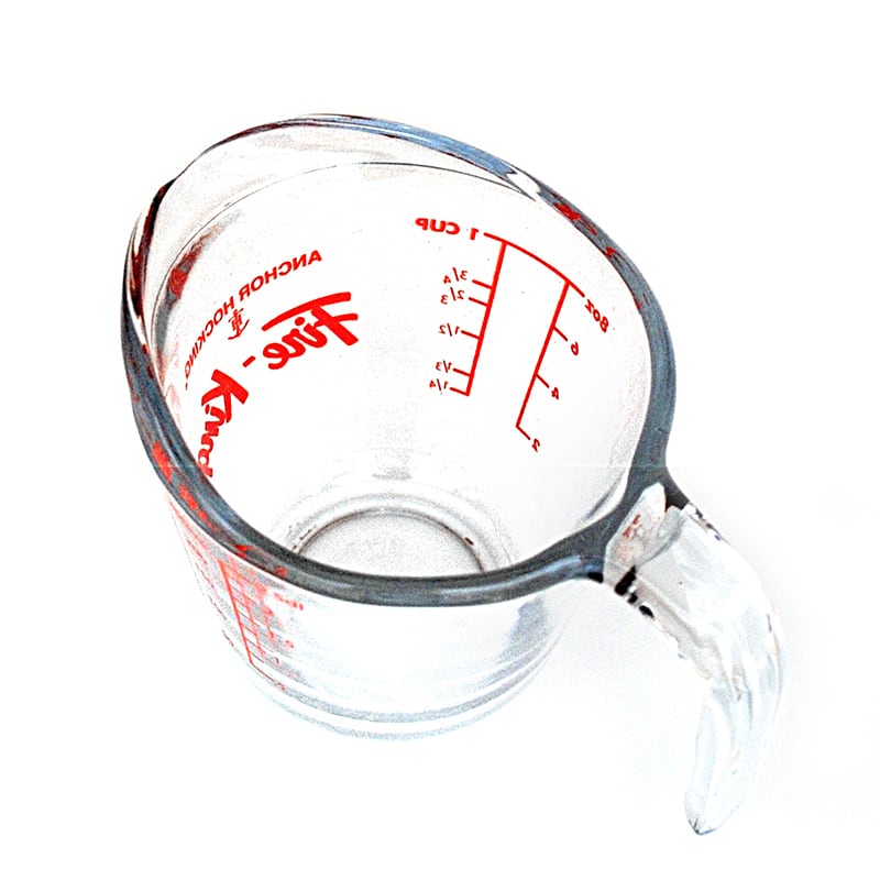 アメリカ製「ファイヤーキング / Fire King 」の、透明で目盛りが見やすいガラス製のメジャーカップ。