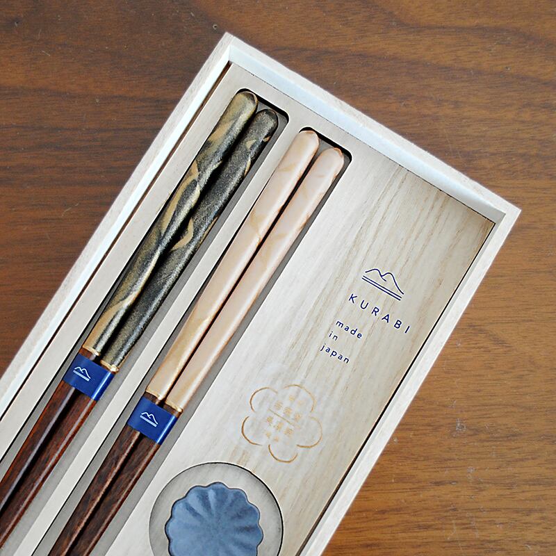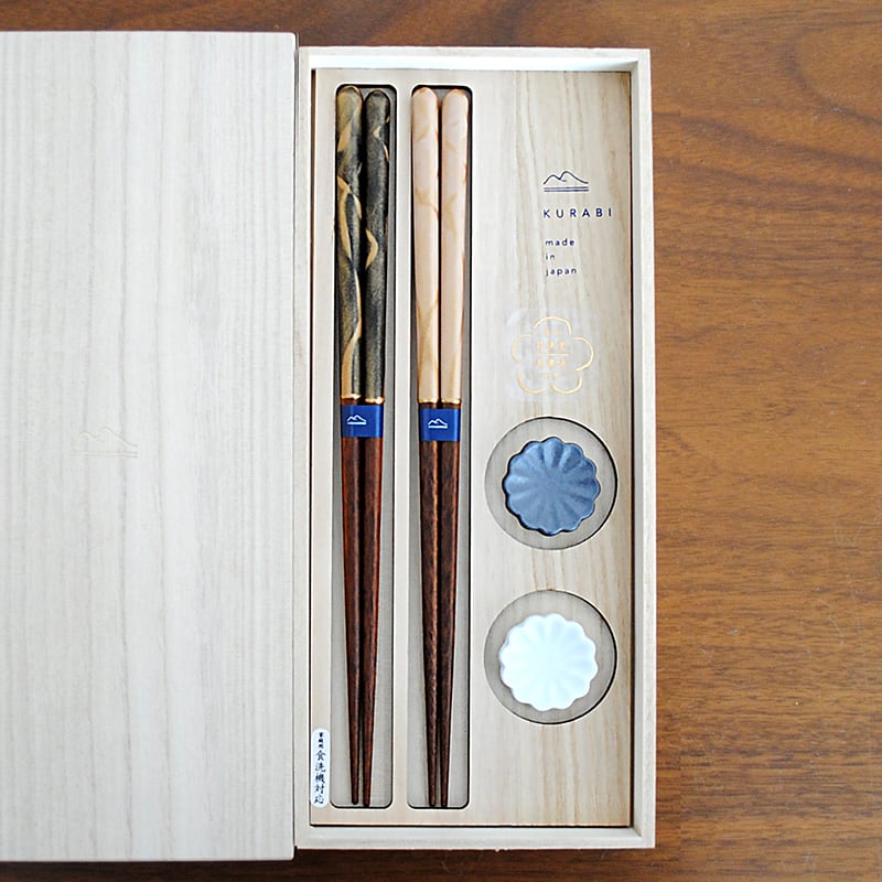 KURABI 箸置き揃え 砂紋 23cm / 夫婦箸 セット 箸置き 桐箱入り #43632879