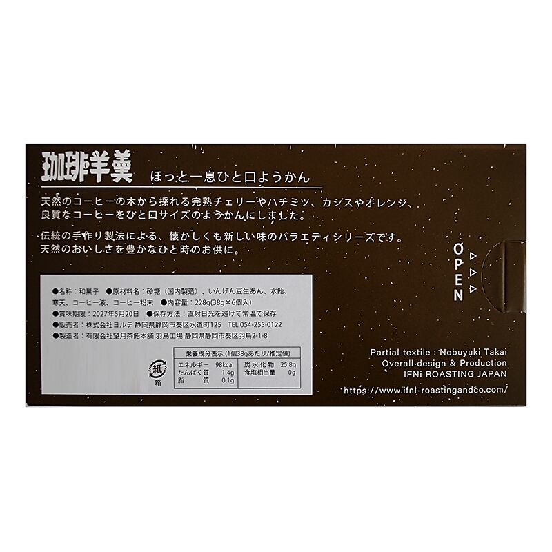 ・原材料名:砂糖(国内製造)、いんげん豆生あん、水飴、寒天、コーヒー液、コーヒー粉末