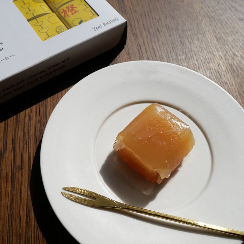 コーヒーの花から採れるハチ蜜と静岡産の天然オレンジを使用した羊羹。